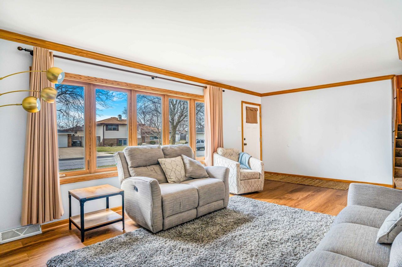 Great starter home, and meticulously maintained! Step into comfort, style, and space, this home offers a spacious OPEN FLOOR PLAN gleaming with natural sunlight, FRESHLY PAINTED walls and ceilings, LAMINATE WOOD FLOORS, a LARGE EAT-IN KITCHEN w/endless countertop space perfect for meal prep and hosting. GENEROUS BEDROOMS sizes, a SPACIOUS LOWER LEVEL ideal for movie nights, game days, and perfect for entertaining!!! All this plus separate OVERSIZED LAUNDRY ROOM perfect for storage and organization, a 2 CAR GARAGE, LARGE BACKYARD ready for summer barbecues, family fun, or gardening, great location, close to parks, and schools!!! Come see it today!!!
